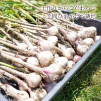 長野県志賀高原のふもとにある、広大な扇状地で栽培している無臭にんにくを使用しています。農薬は使わず、秋から夏まで約一年間、手間をかけて丁寧に栽培されています。